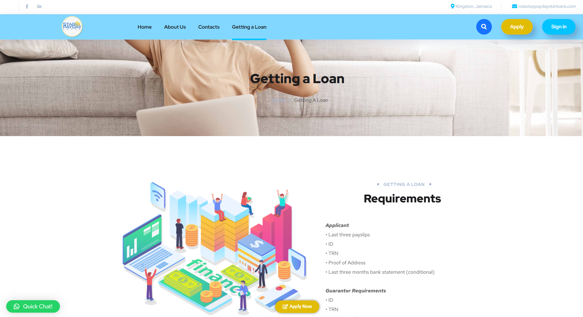 - Getting a Loan page providing the basic loan process overview.